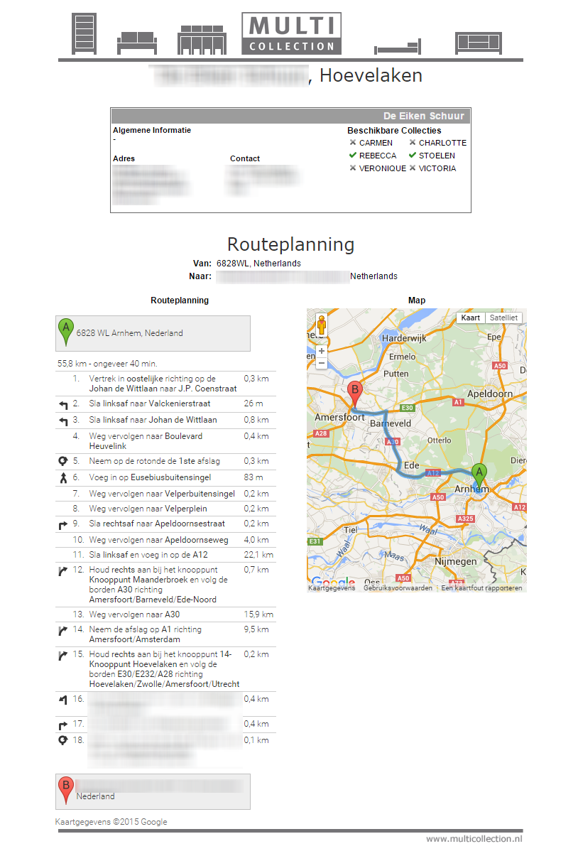 Printvriendelijke informatie en routebeschrijving van verkooppunt -