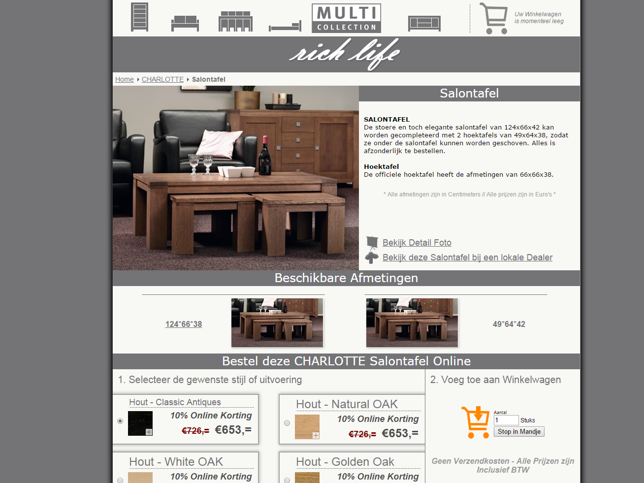 Productinformatie, inclusief fotomateriaal, varaties, bestelopties en winkelzoeker -