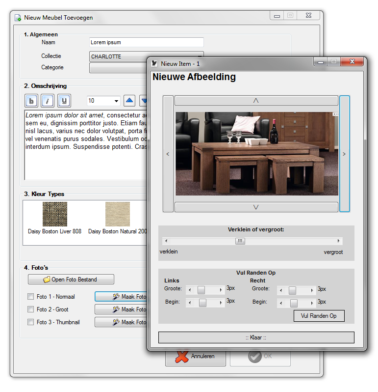 Desktopsoftware om eenvoudig snel meerdere producten, inclusief fotomateriaal, toe te voegen